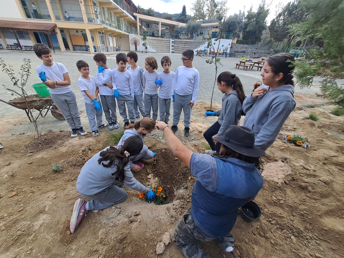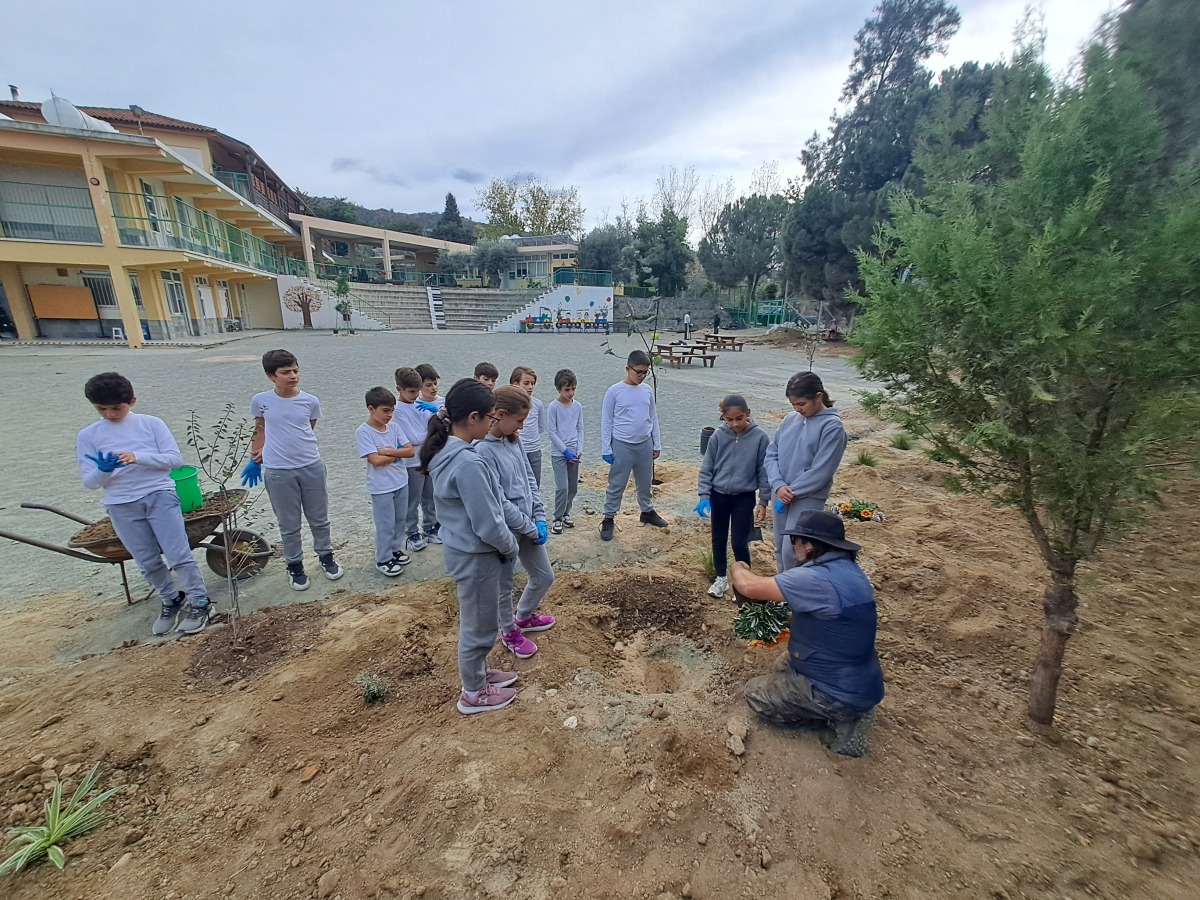Σήμερα τα παιδιά του σχολείου μας φύτεψαν δέντρα, φυτά και λουλούδια